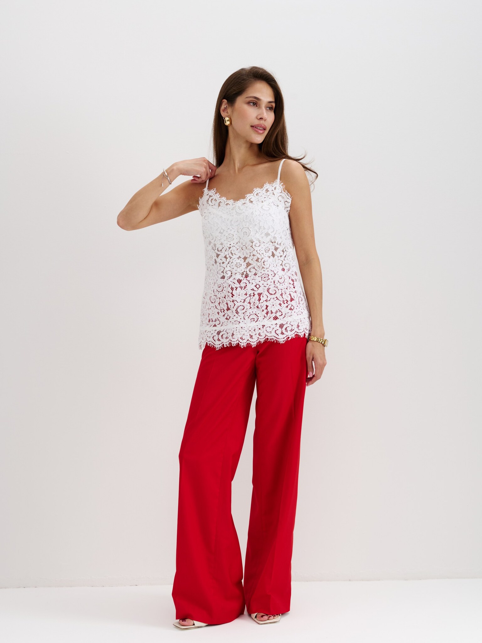 Изящная блуза из кордового кружева — воплощение женственности и лёгкости. Приталенный крой подчёркивает силуэт, V‑образный вырез с пистонами добавляет изысканности, а регулируемые бретели обеспечивают комфортную посадку. Модель без подклада идеальна для тёплых дней.