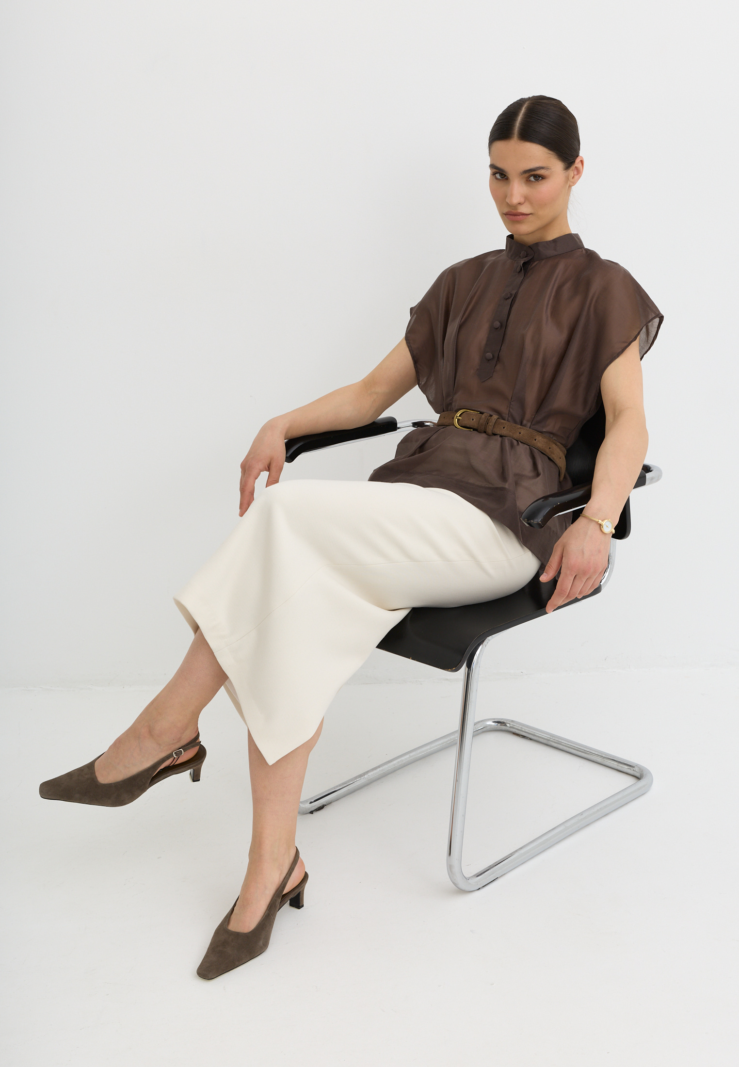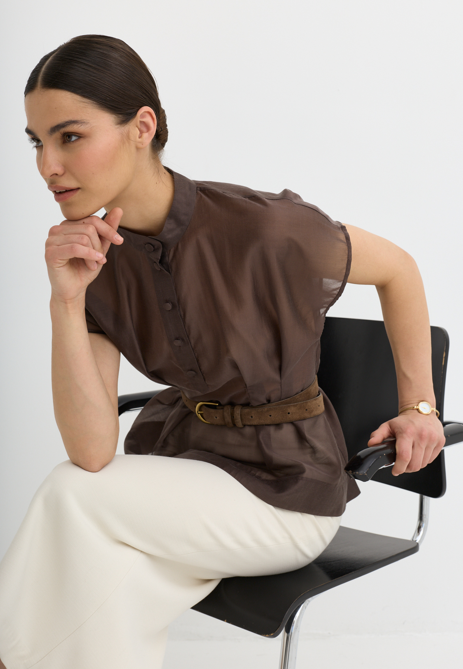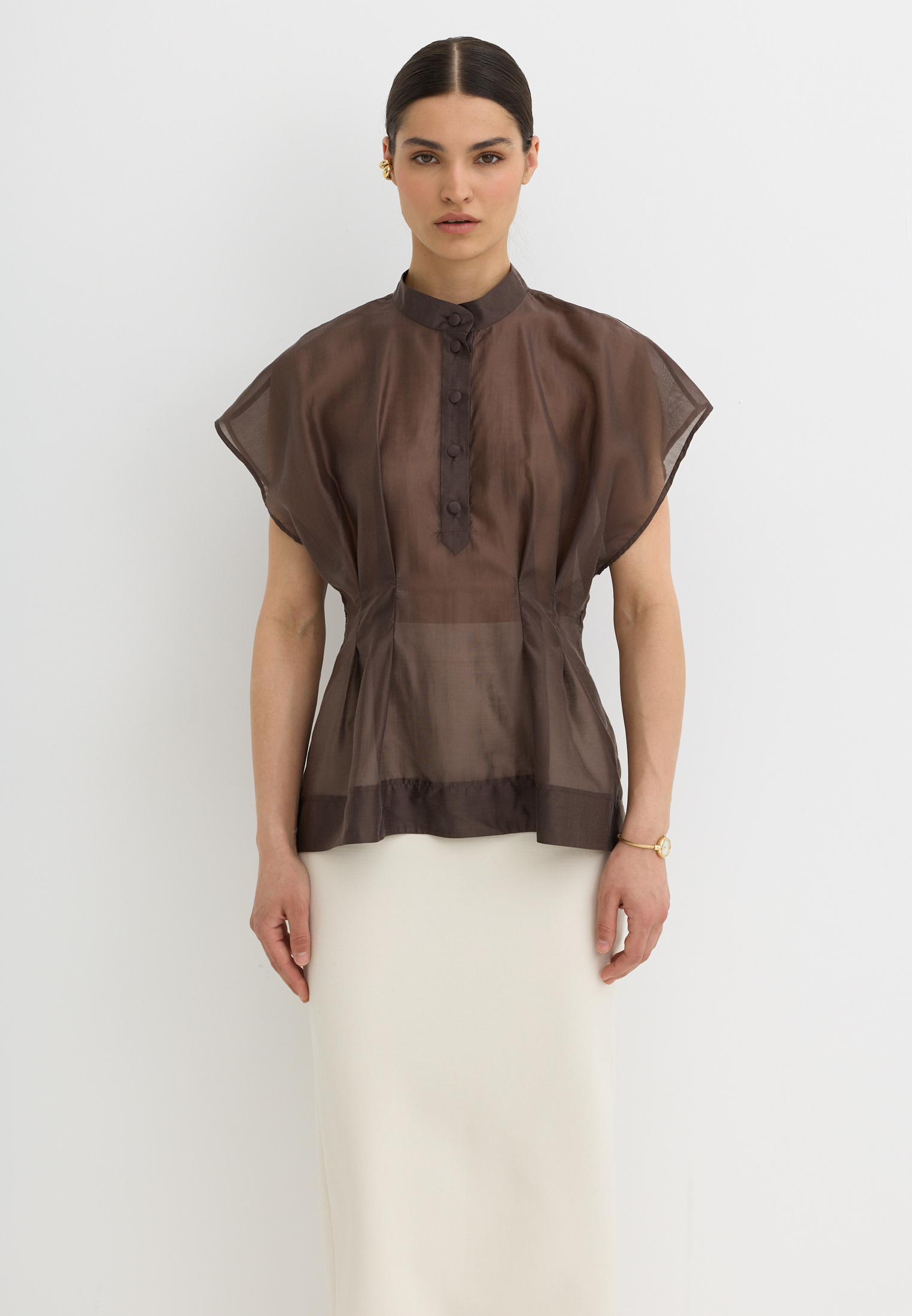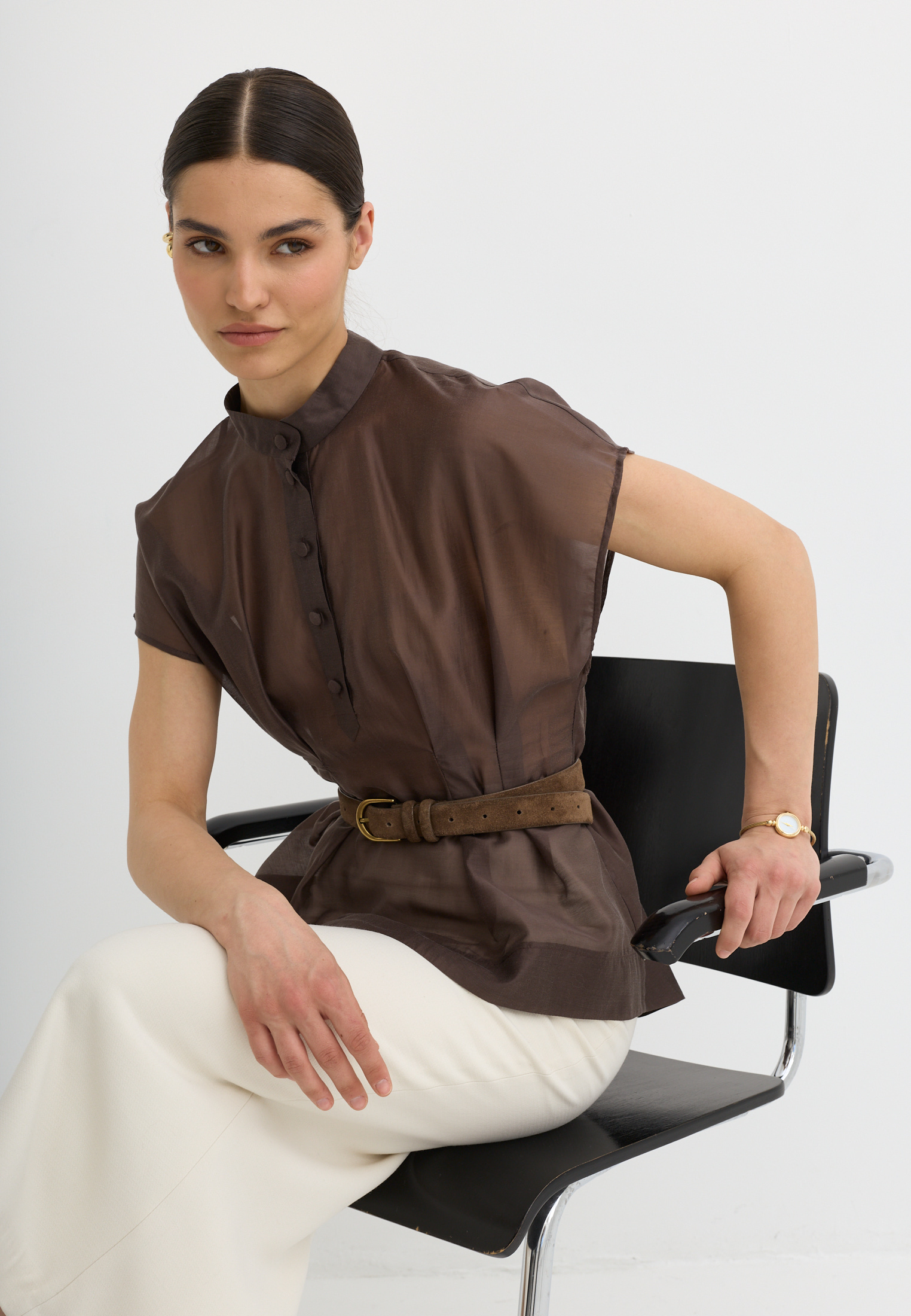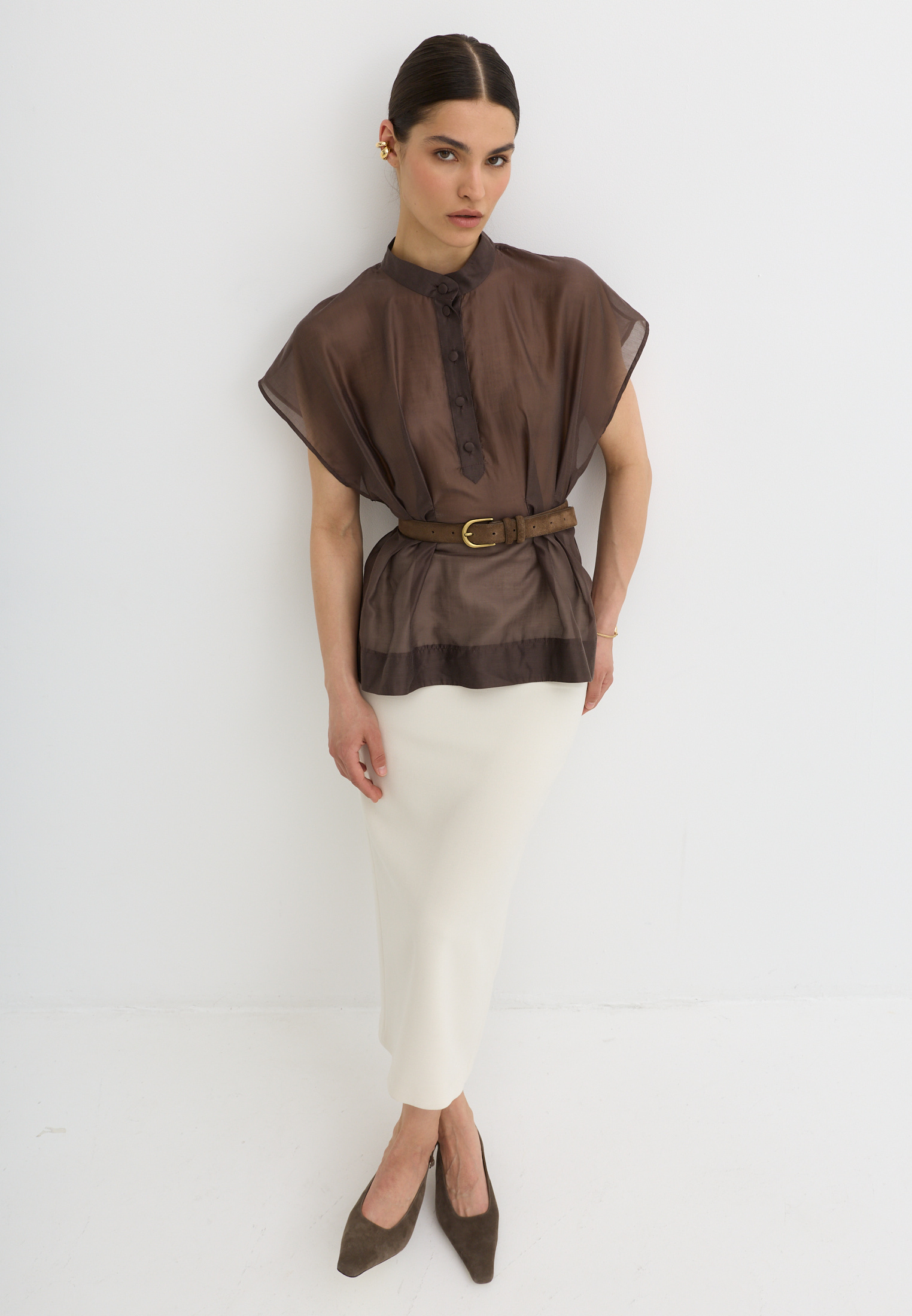 Легкая, воздушная блузка приталенного кроя, выполненная из тенселя. Тенсель - текстильный материал, который производят из древесной целлюлозы эвкалипта по экологичной технологии. По ощущениям напоминает мягкий хлопок или шёлк, но при этом обладает прочностью, хорошей воздухопроницаемостью и антибактериальными свойствами.