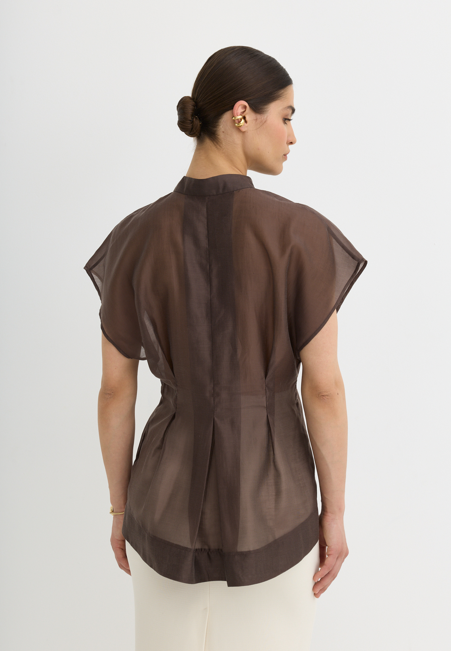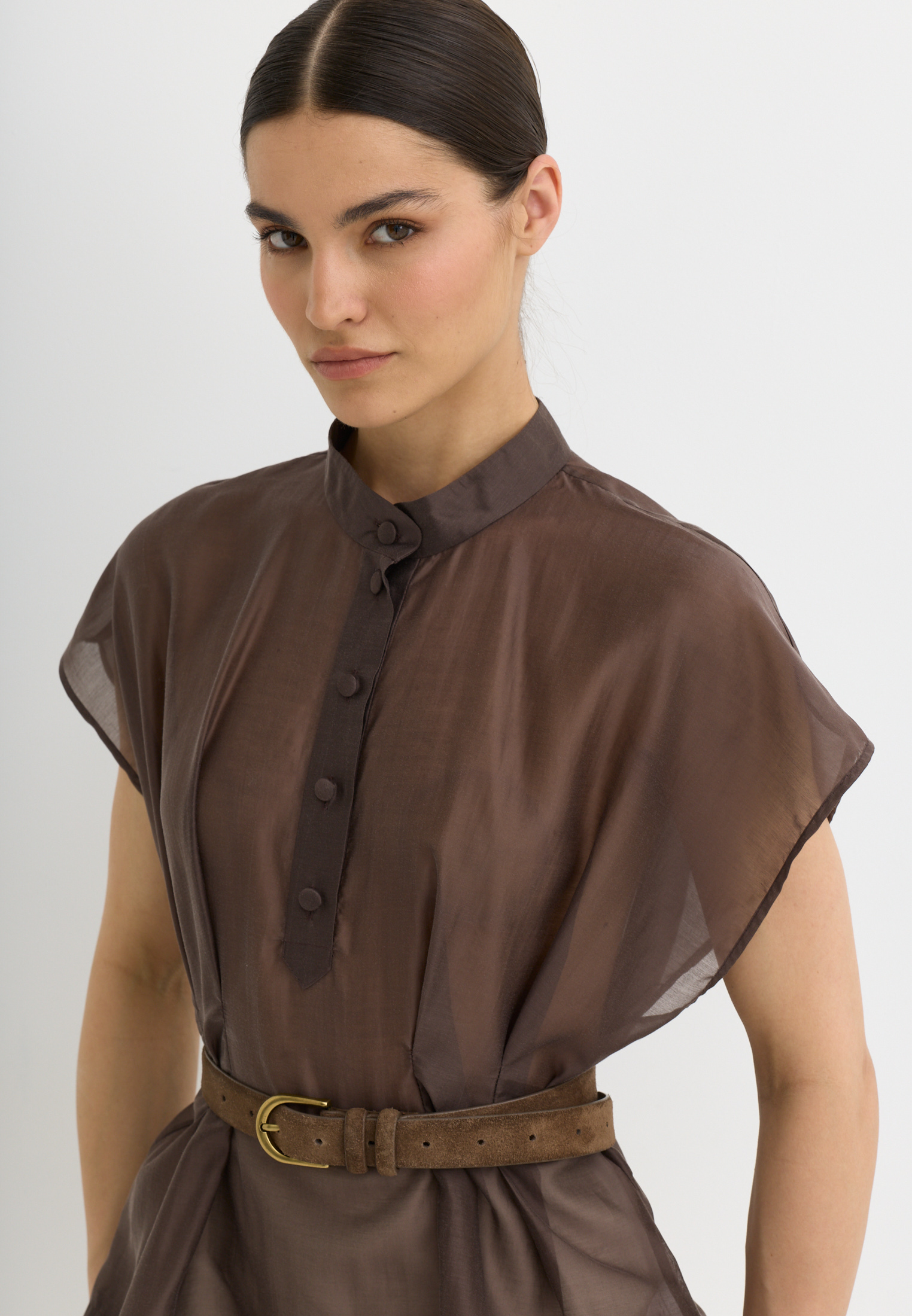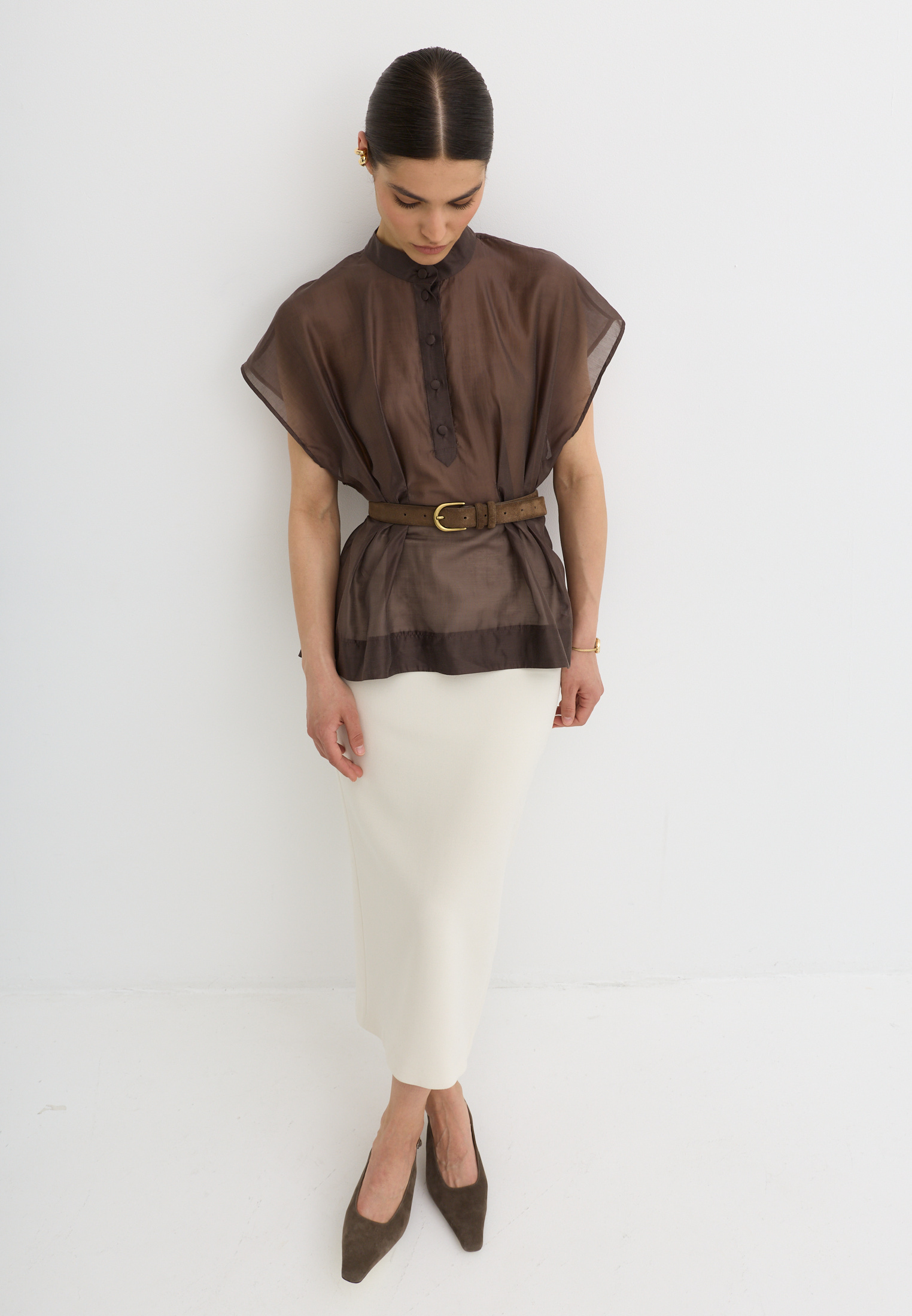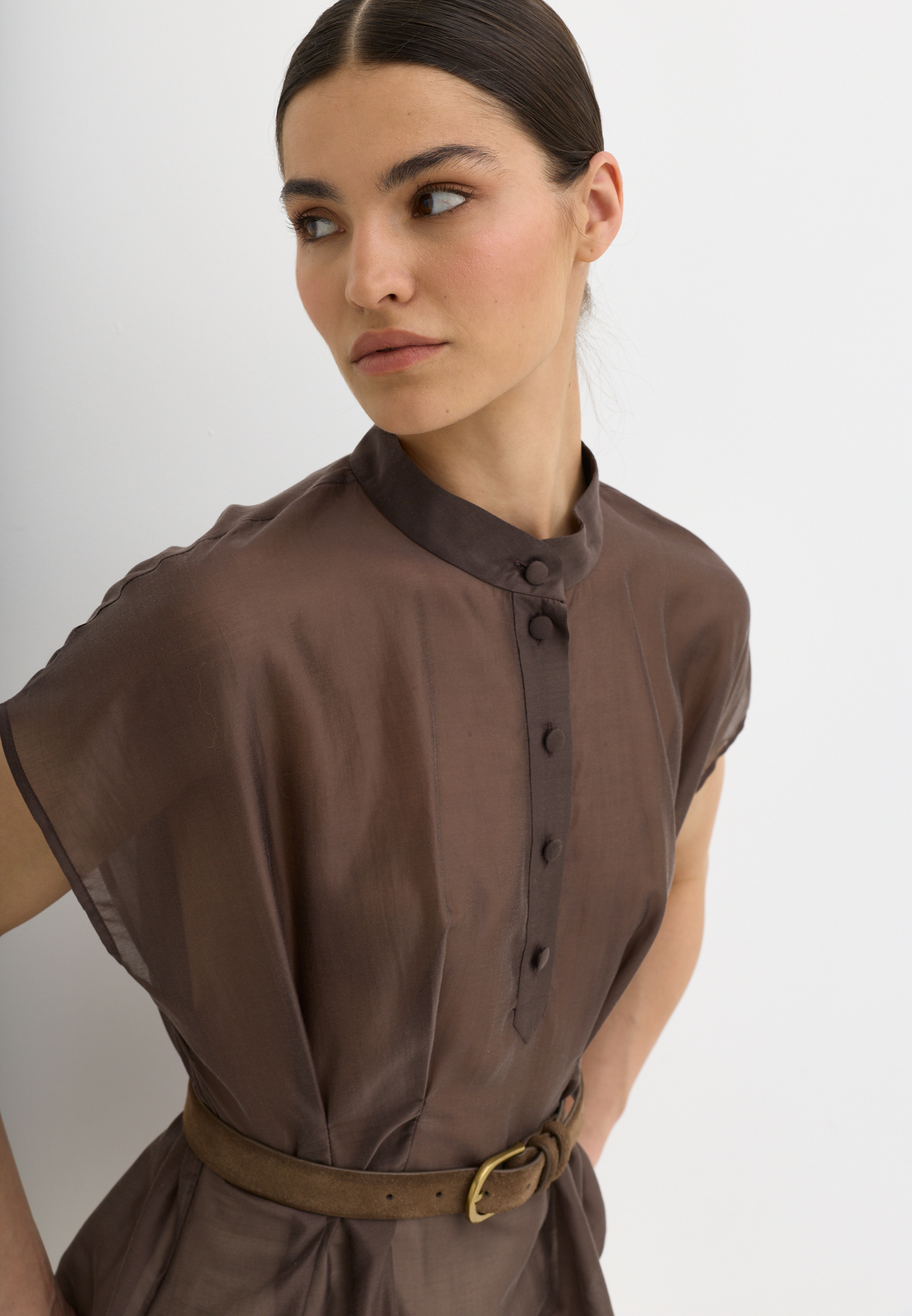 Легкая, воздушная блузка приталенного кроя, выполненная из тенселя. Тенсель - текстильный материал, который производят из древесной целлюлозы эвкалипта по экологичной технологии. По ощущениям напоминает мягкий хлопок или шёлк, но при этом обладает прочностью, хорошей воздухопроницаемостью и антибактериальными свойствами.